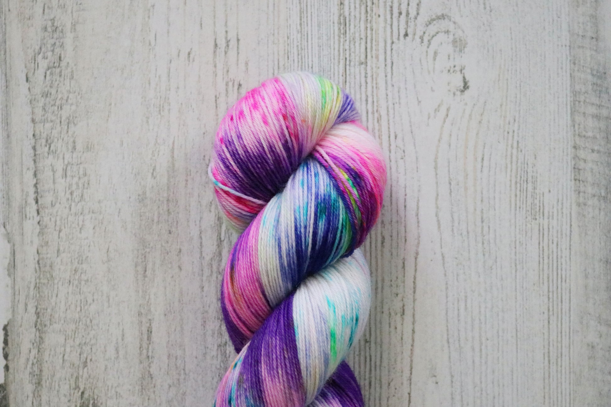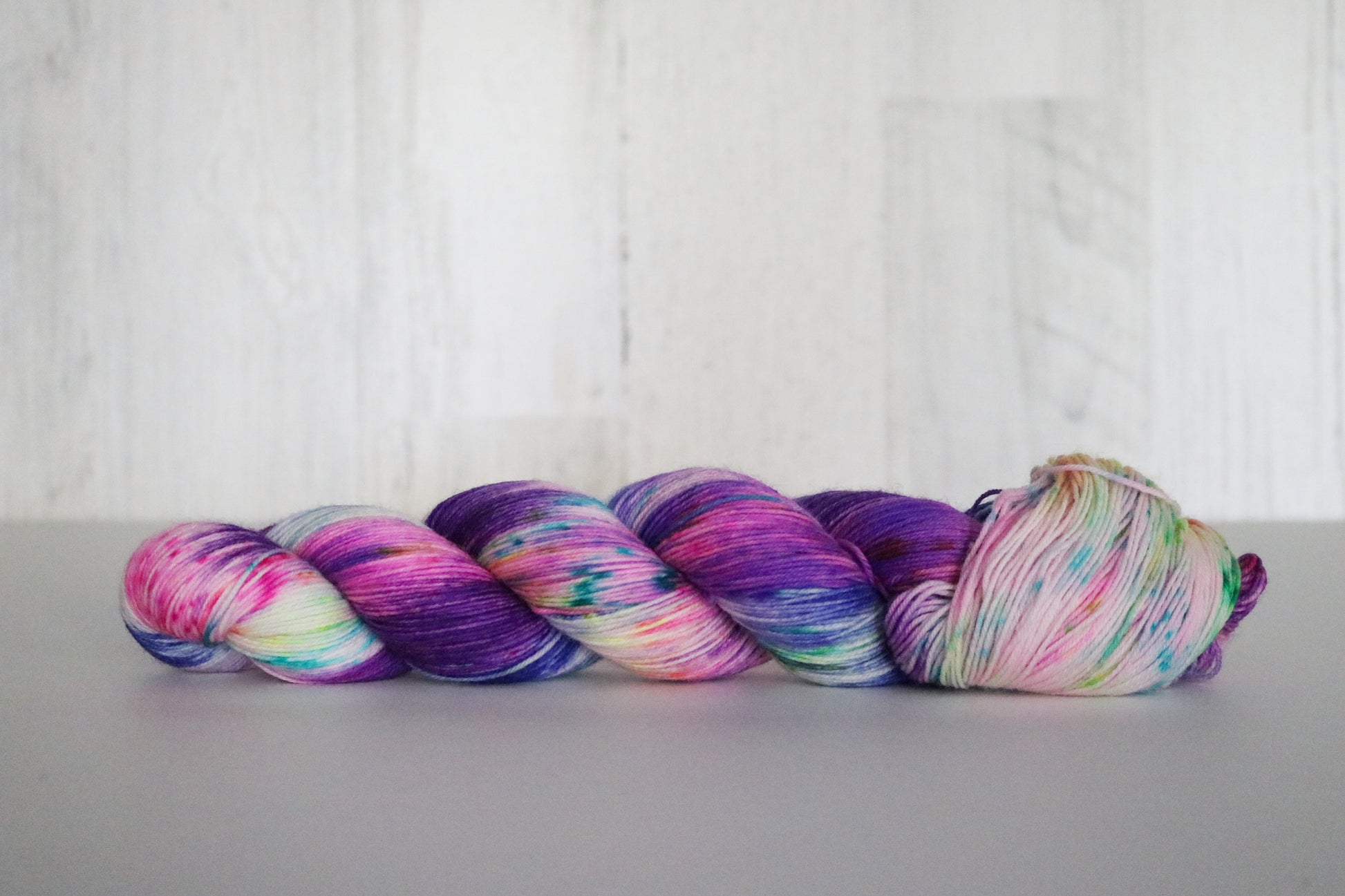 All yarn is dyed with professional grade acid dyes. Since this is a hand dyed yarn, no two skeins are alike (yep, they're all unique!) but all efforts are made to keep all skeins as consistent as possible.