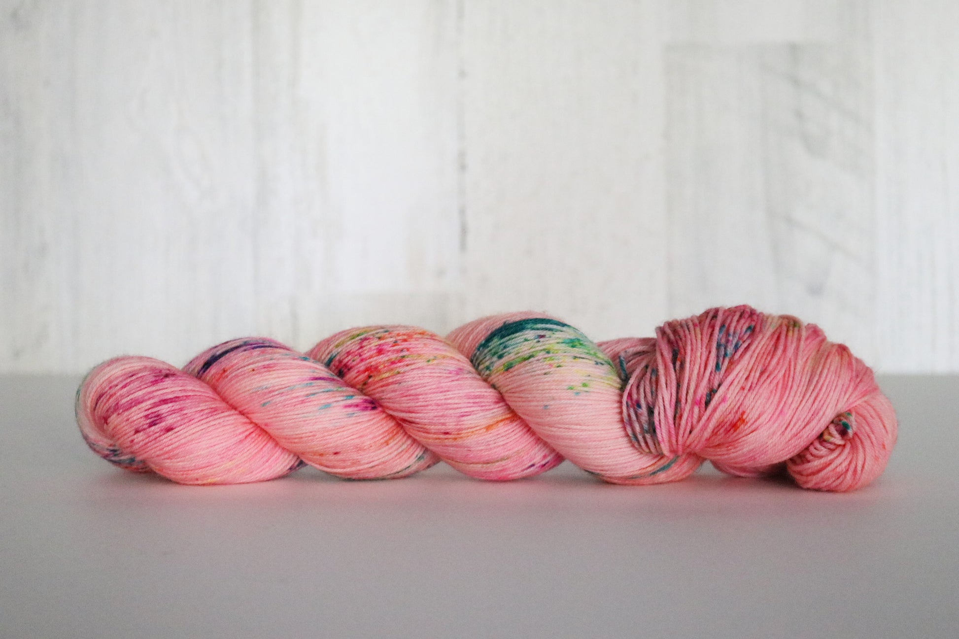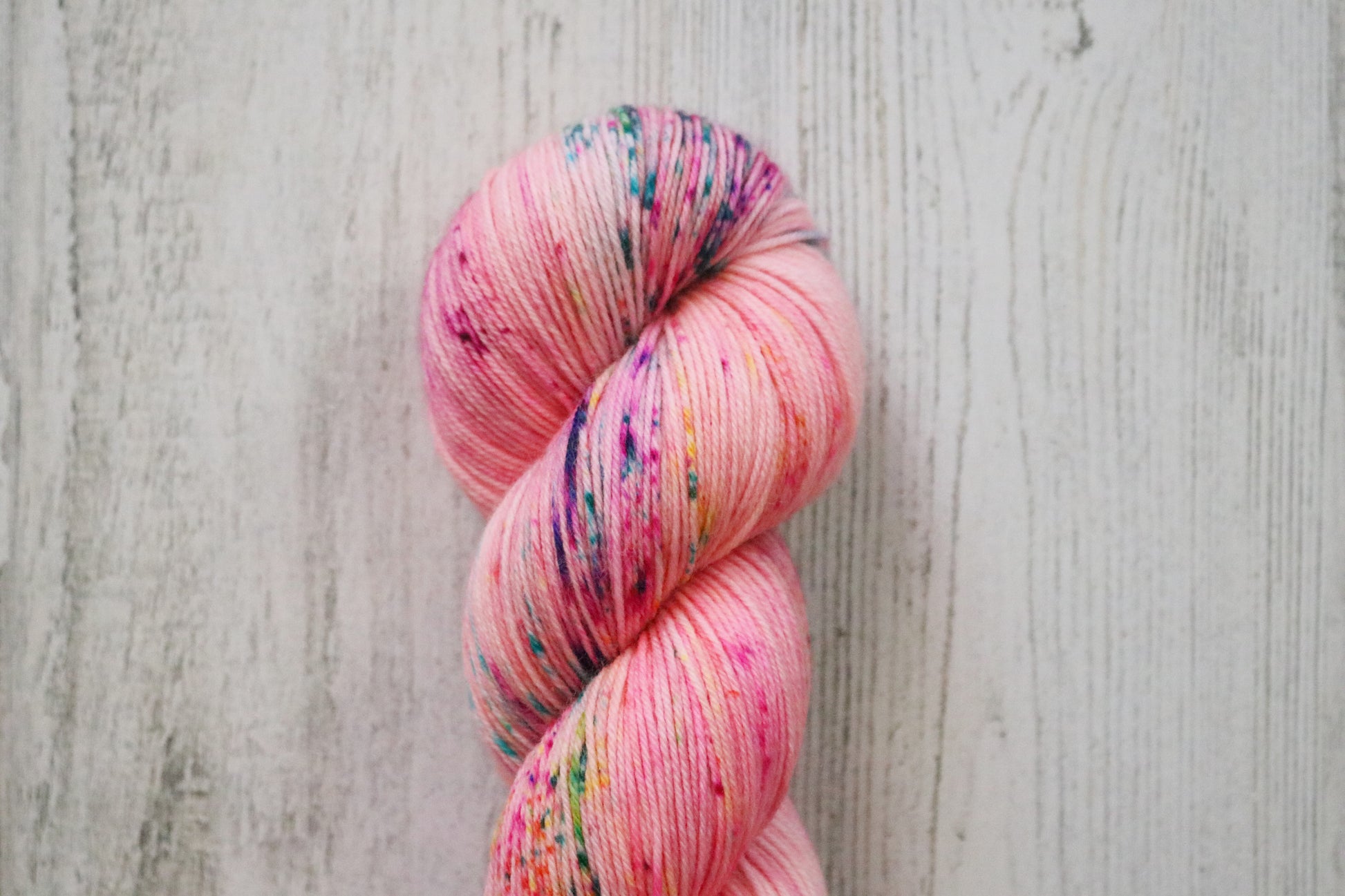 All yarn is dyed with professional grade acid dyes. Since this is a hand dyed yarn, no two skeins are alike (yep, they're all unique!) but all efforts are made to keep all skeins as consistent as possible.