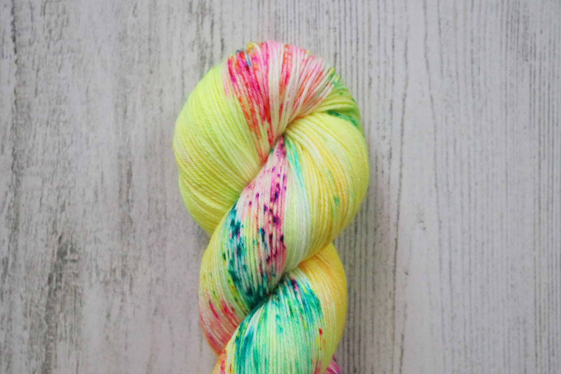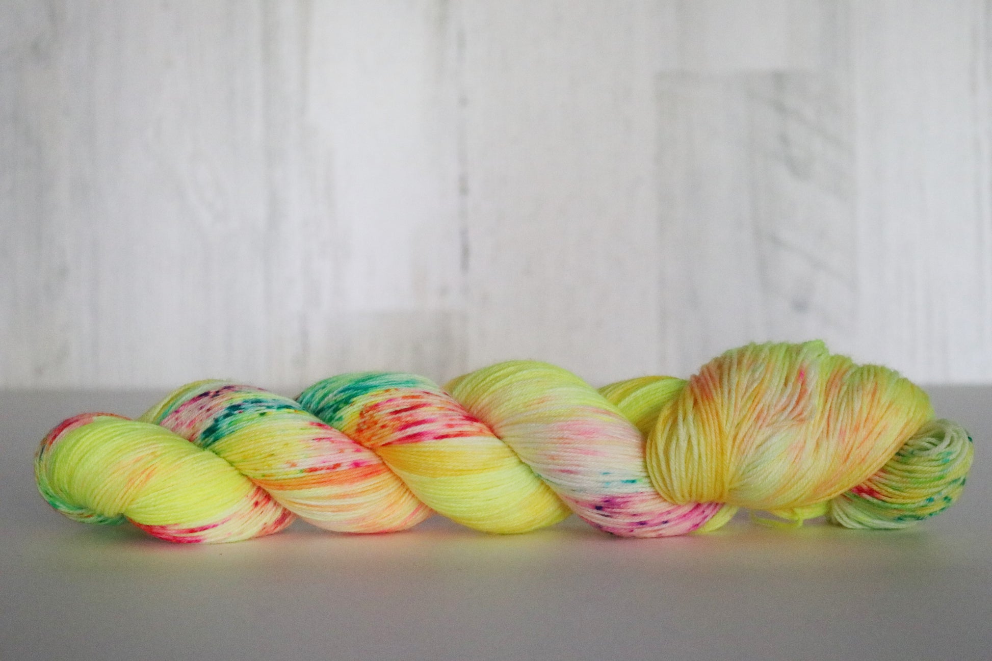 All yarn is dyed with professional grade acid dyes. Since this is a hand dyed yarn, no two skeins are alike (yep, they're all unique!) but all efforts are made to keep all skeins as consistent as possible.