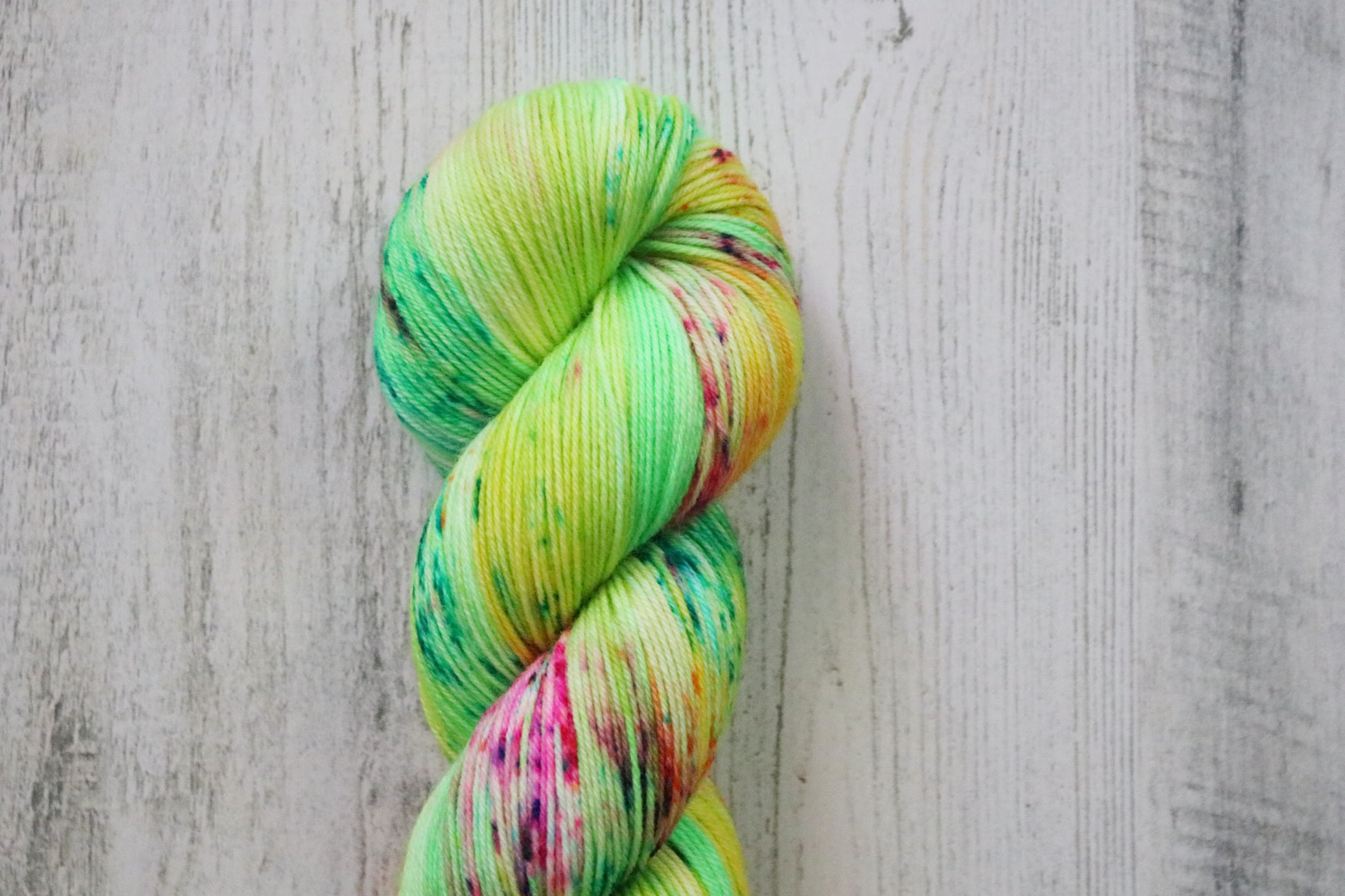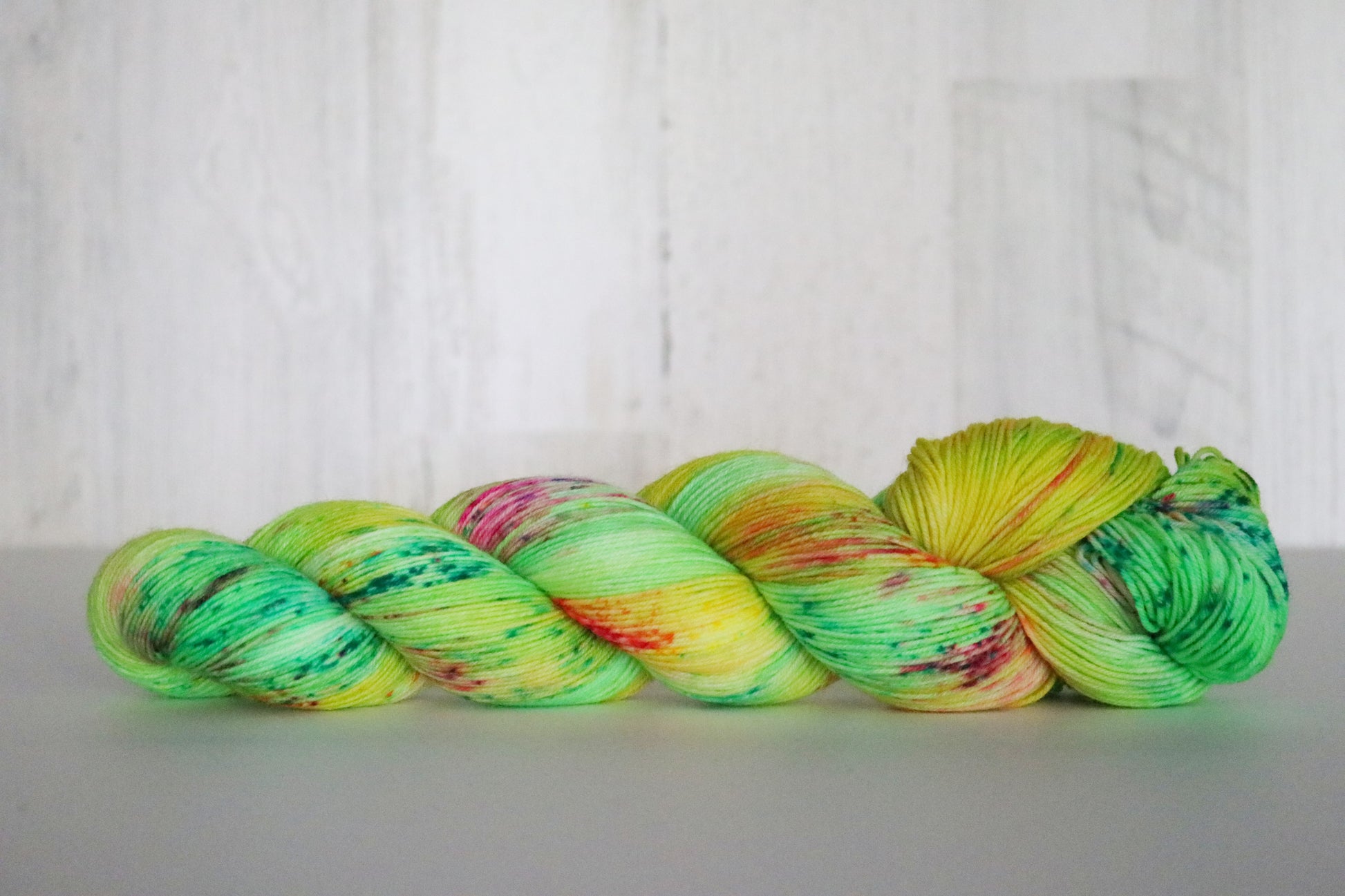 All yarn is dyed with professional grade acid dyes. Since this is a hand dyed yarn, no two skeins are alike (yep, they're all unique!) but all efforts are made to keep all skeins as consistent as possible.