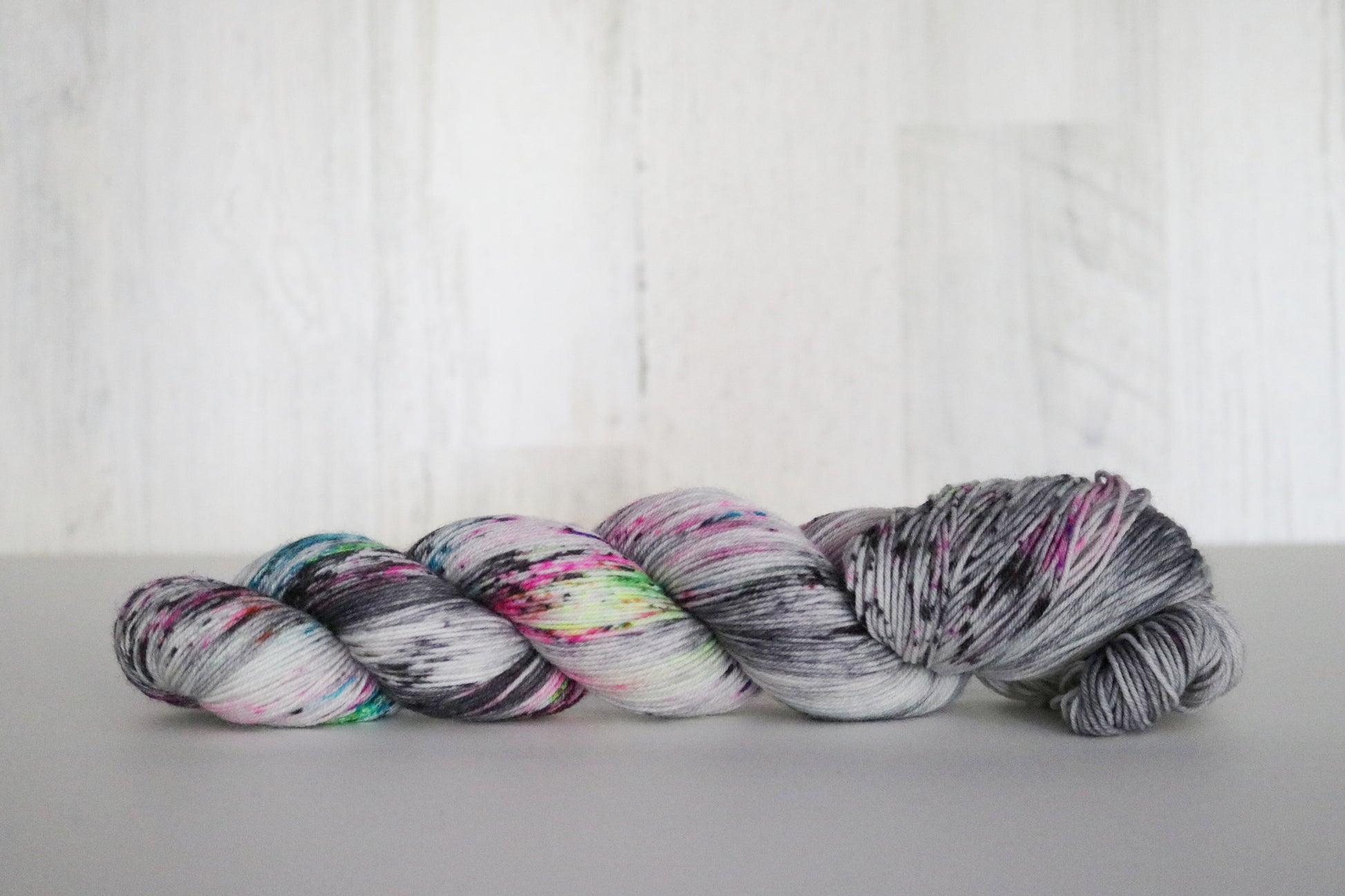 All yarn is dyed with professional grade acid dyes. Since this is a hand dyed yarn, no two skeins are alike (yep, they're all unique!) but all efforts are made to keep all skeins as consistent as possible.