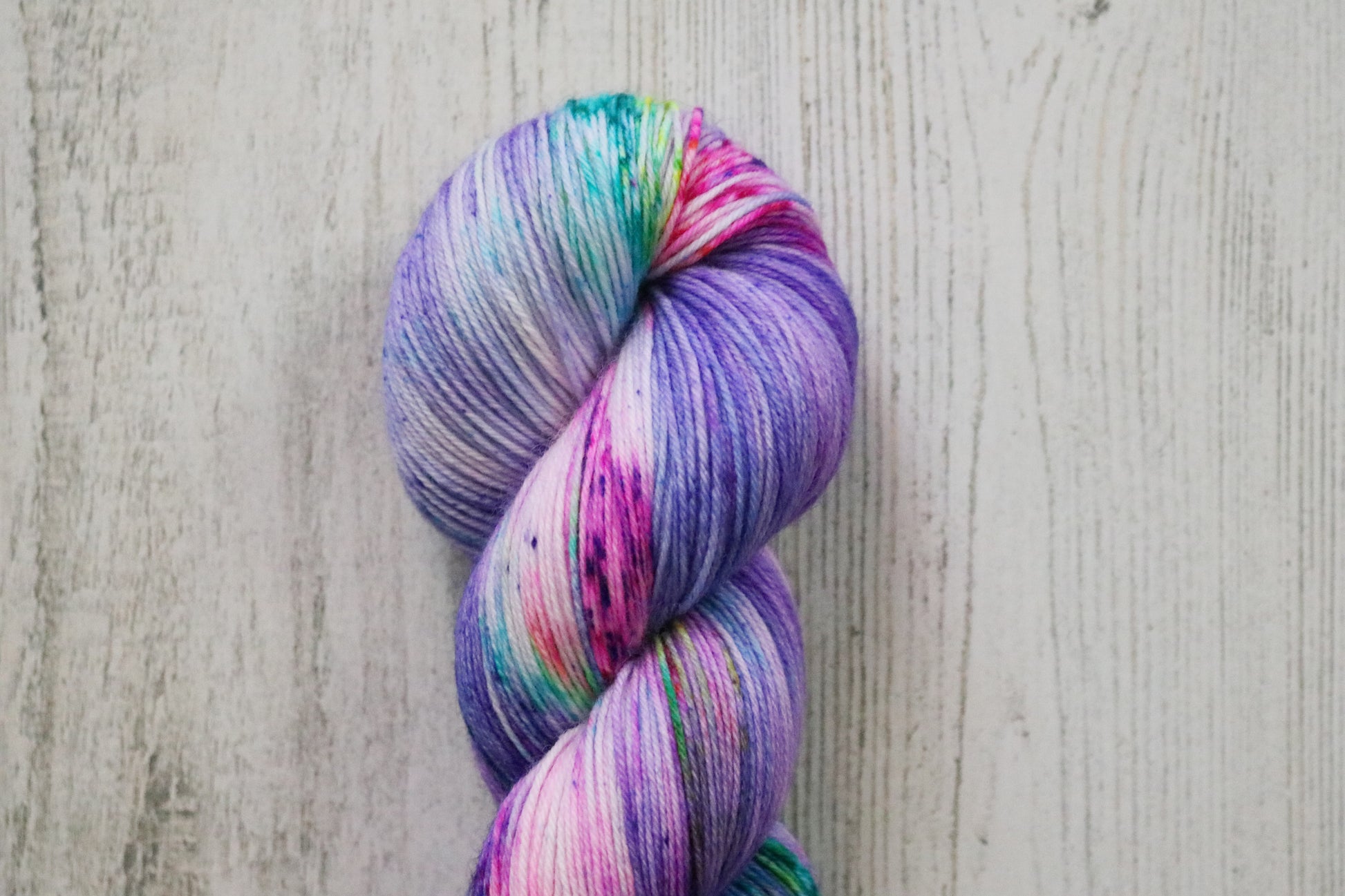All yarn is dyed with professional grade acid dyes. Since this is a hand dyed yarn, no two skeins are alike (yep, they're all unique!) but all efforts are made to keep all skeins as consistent as possible.