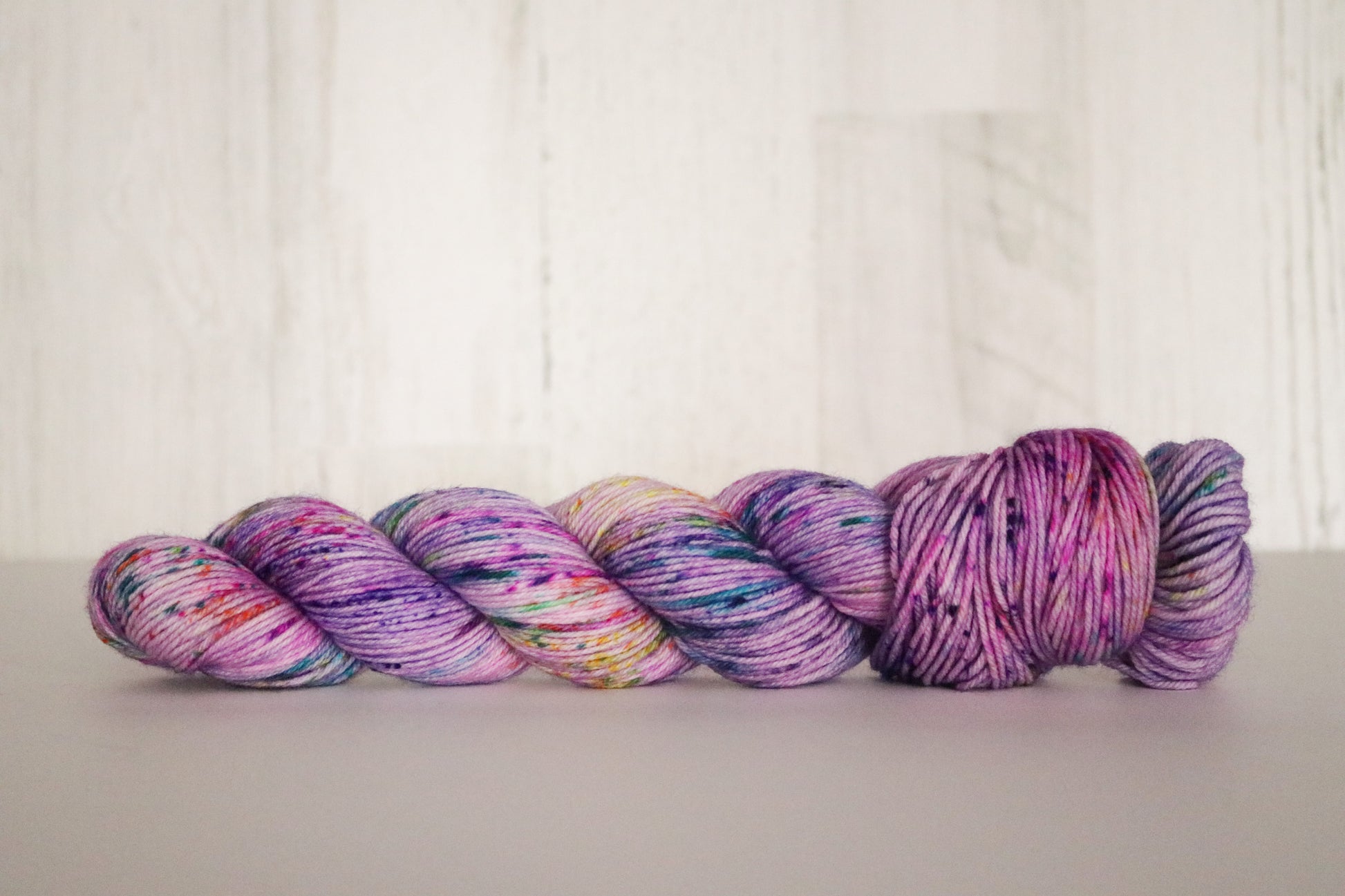 All yarn is dyed with professional grade acid dyes. Since this is a hand dyed yarn, no two skeins are alike (yep, they're all unique!) but all efforts are made to keep all skeins as consistent as possible.