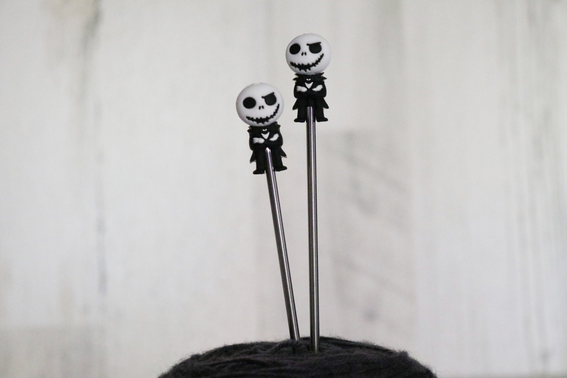 Jack Skellington will keep your needles cozy when you're not working on your project. These measure approximately 1.25" and fit needles US 2 (2.75mm) and up.