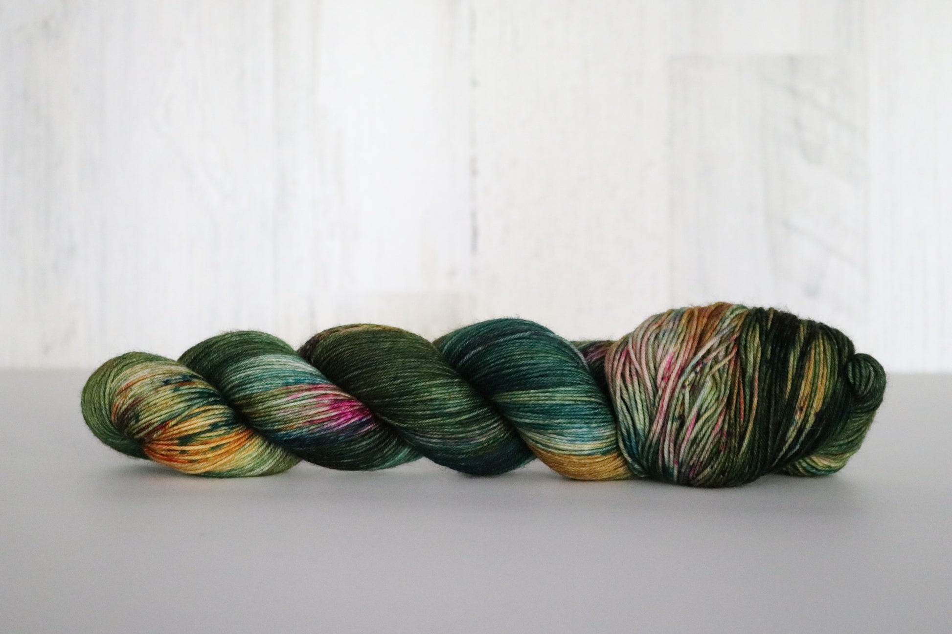 All yarn is dyed with professional grade acid dyes. Since this is a hand dyed yarn, no two skeins are alike (yep, they're all unique!) but all efforts are made to keep all skeins as consistent as possible.