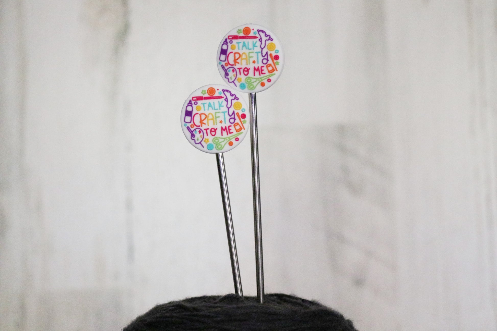 For all the crafters out there! This cute stopper will keep your needles cozy when you're not working on your project. These measure approximately 1" and fit needles US 2 (2.75mm) and up.