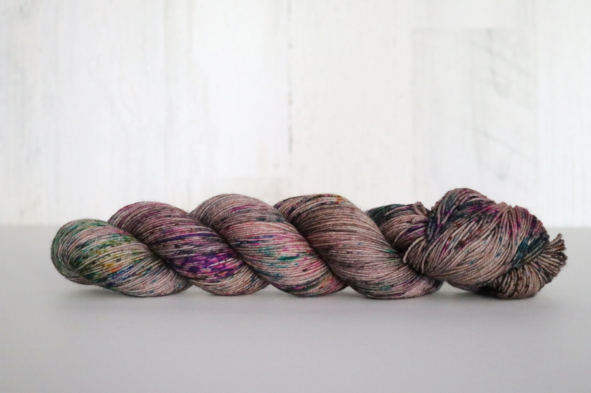 All yarn is dyed with professional grade acid dyes. Since this is a hand dyed yarn, no two skeins are alike (yep, they're all unique!) but all efforts are made to keep all skeins as consistent as possible.